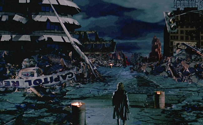 More generally, Escape from L.A. film is a work obsessed with the fabrication of Hollywood mythology, from the obvious (Bruce Campbell as the Surgeon General of Beverley Hills, who collects bodies to recover skin to keep his scions perennially beautiful) to more subtle remarks, such as the continual refrain “I Thought You’d Be Taller” that becomes a sort of needling chorus throughout the film for characters who meet Plissken. Snake twice attempts to assault or kill his U.S. government captors early on, reminding him that they know more tricks than he can muster, and that he, and we, will have to learn that we are being manipulated and may have to play the same game to get our revenge. Snake finally learns this in his phenomenally disastrous exit from the film, a blast of cosmic nihilism rarely seen in any film, let alone a blockbuster.