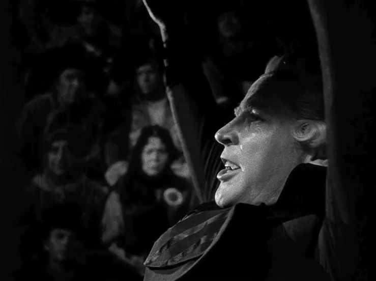 Poetically, this marks Reign of Terror as a hell of a text, not a milquetoast, straight-laced historical suit-and-tie but a full-on expressionist straight-jacket. Politically, it means that the film has little use for historical grandstanding, and that its politics can verge on drowning revolutionary potential – the hope of a genuinely better world – in a swamp of what passes for “complexity” but may simply be confusion. Released in 1949, Reign of Terror is a transparently fearful text. It is a Cold War casualty fully in line with the politics of the time. Its opinion is that revolution is often more foolhardy than not. It resonates with what Lionel Trilling would call the liberal imagination’s fear of dogma and its metaphysics of calibrated uncertainty, Isaiah Berlin’s appreciation of “negative liberty” as a bulwark against what he perceived to be the excesses of totalitarian solidity, and Hannah Arendt’s belief that the Soviet revolution was merely an extension of the French Revolution’s inevitable slide into dictatorial control. The film’s portrait of Maximilien Robespierre is as a self-important monomaniac exercising autocratic dominion, a God-like puppet-mater who calmly intones things like “I made the mob. They are my children, they won’t kill their own father.”